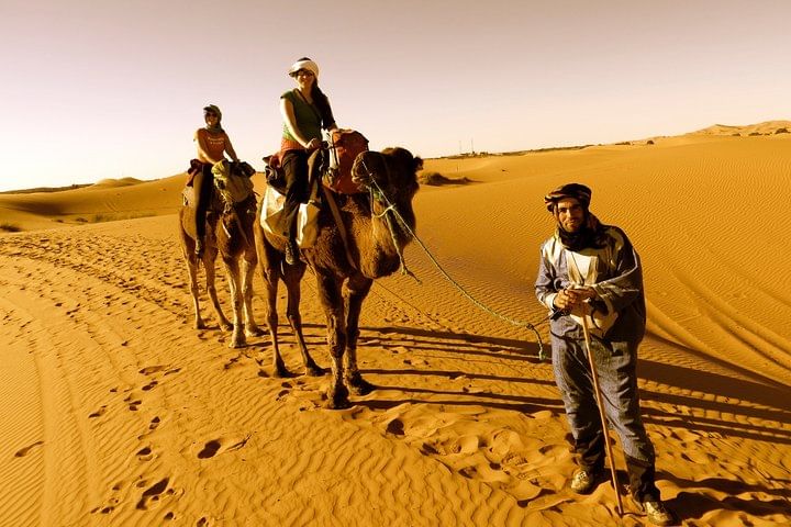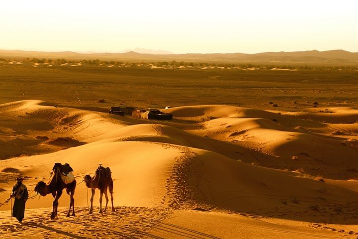 Ride a camel in Erg Chebbi to reach your desert camp