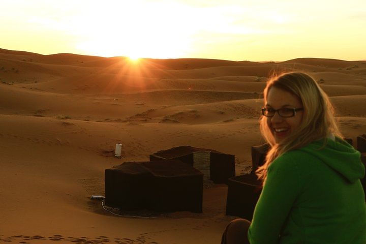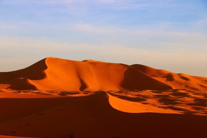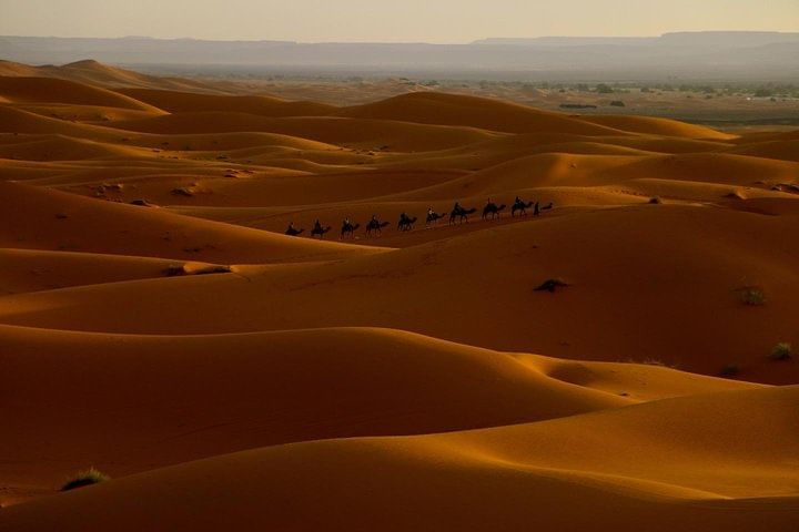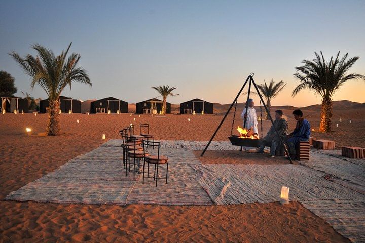 Marvel at the sunrise the next morning and enjoy your rich breakfast before riding back to Merzouga
