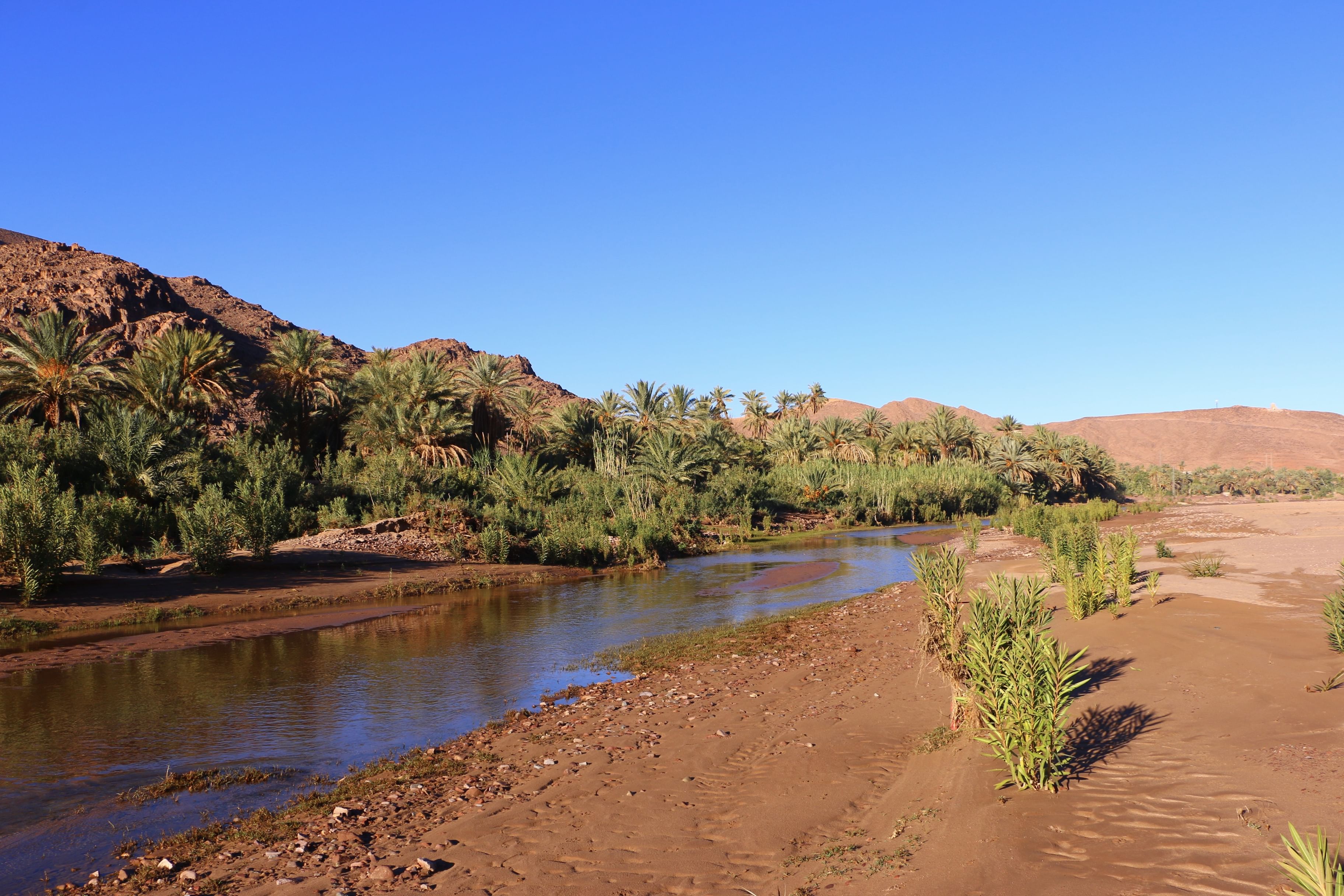You'll continue the trip to Oasis Fint, where you will enjoy your traditional lunch at a local family's home. You have time to explore the quiet and peaceful oasis at the river together with a guide and learn about the local life of the friendly inhabitants. Return travel to Ouarzazate and get dropped off at your hotel/riad in the late afternoon.