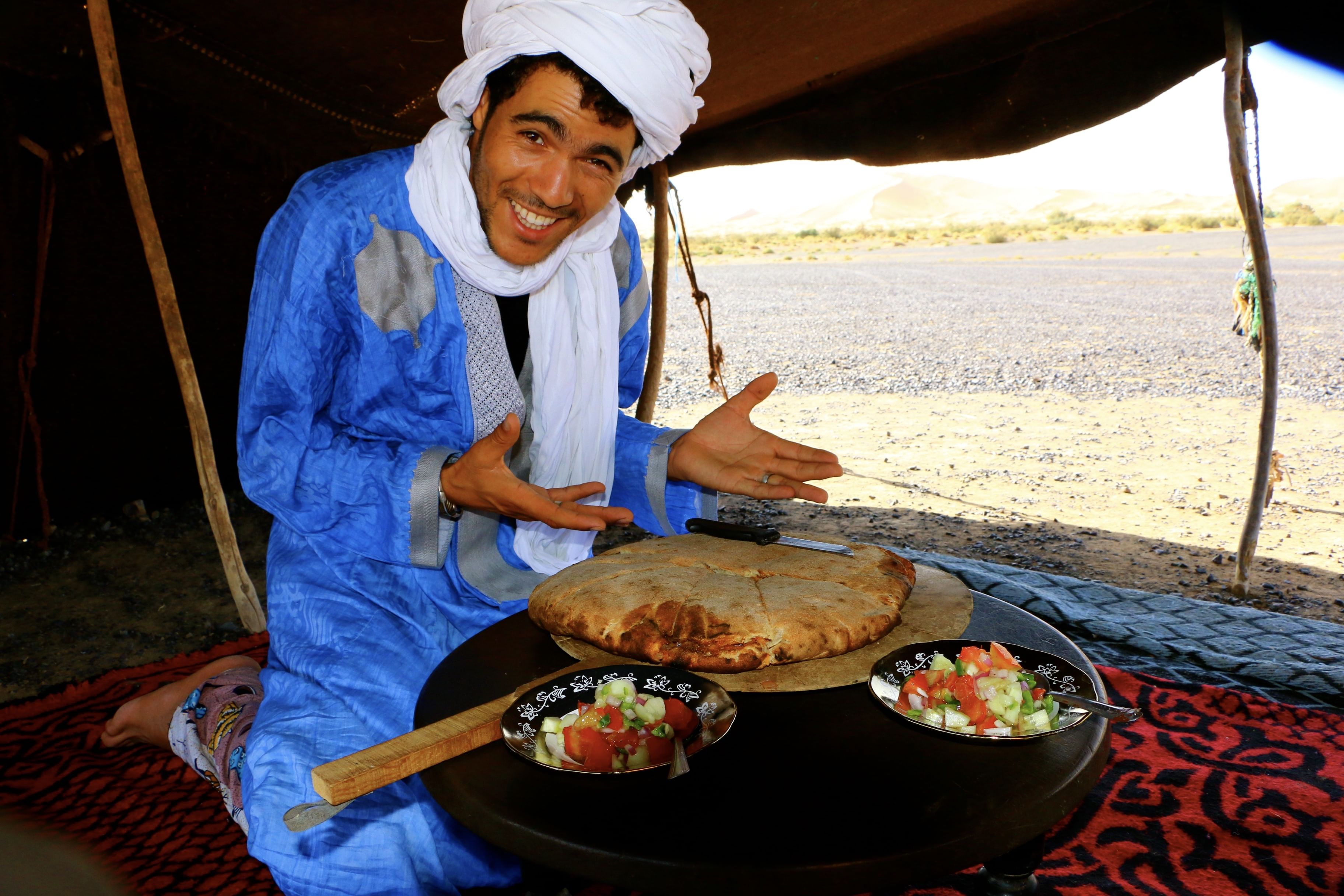 After returning to your lodge, you will experience a one hour camel ride to reach the desert camp in the middle of the big dunes which reach up to 160 m at sunset. Enjoy your evening dining in a berber tent, look for shooting stars at the camp fire and sleep in a nomad tent!
