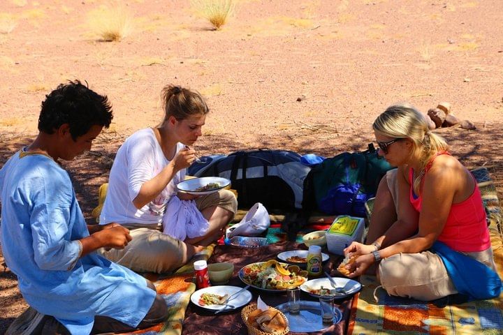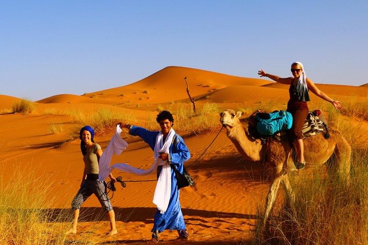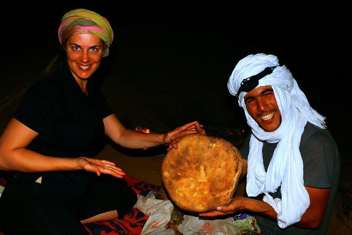 You will also love the sunrises and sunsets on the ridge of the dunes and the mint teas at the set up camping. Sleeping in your tent or under the stars, bake the bread with the camel drivers, read the map of the starry sky, make a campfire... and share this unique experience with us.
