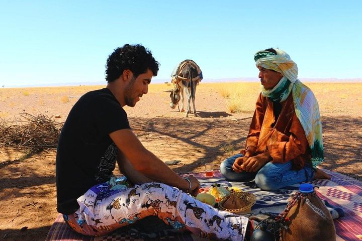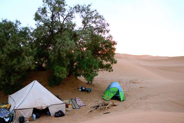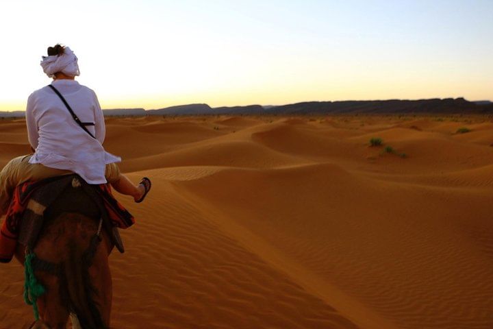You will also love the sunrises and sunsets on the ridge of the dunes and the mint teas at the set up camping. Sleeping in your tent or under the stars, bake the bread with the camel drivers, read the map of the starry sky, make a campfire... and share this unique experience with us.