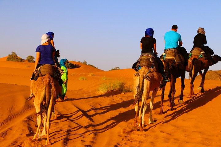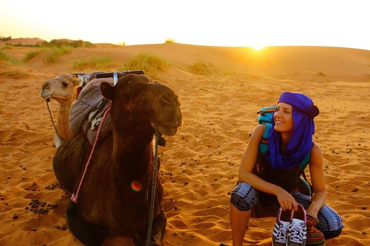 Ride a camel in Erg Chebbi to reach your desert camp