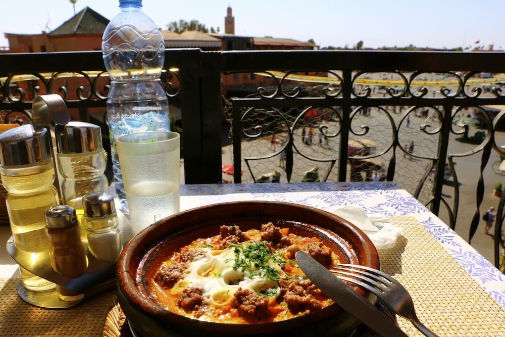 Visit the Koutoubia Mosque and then Jemaa el-Fnaa square where you can enjoy the taste of some freshly pressed orange juice while taking in the bustling activity of snake charmers, henna tattoo artists and water sellers.