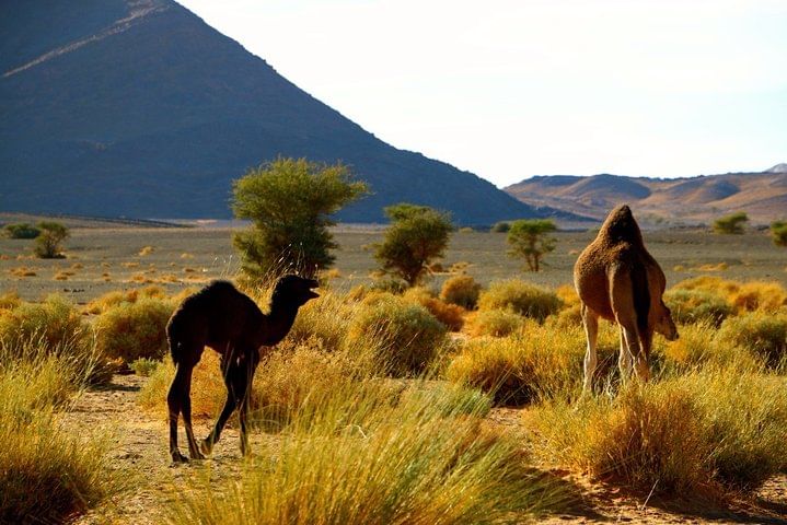 Ride a camel in Erg Chebbi and enjoy your lunch under the shade of Tamarisk trees