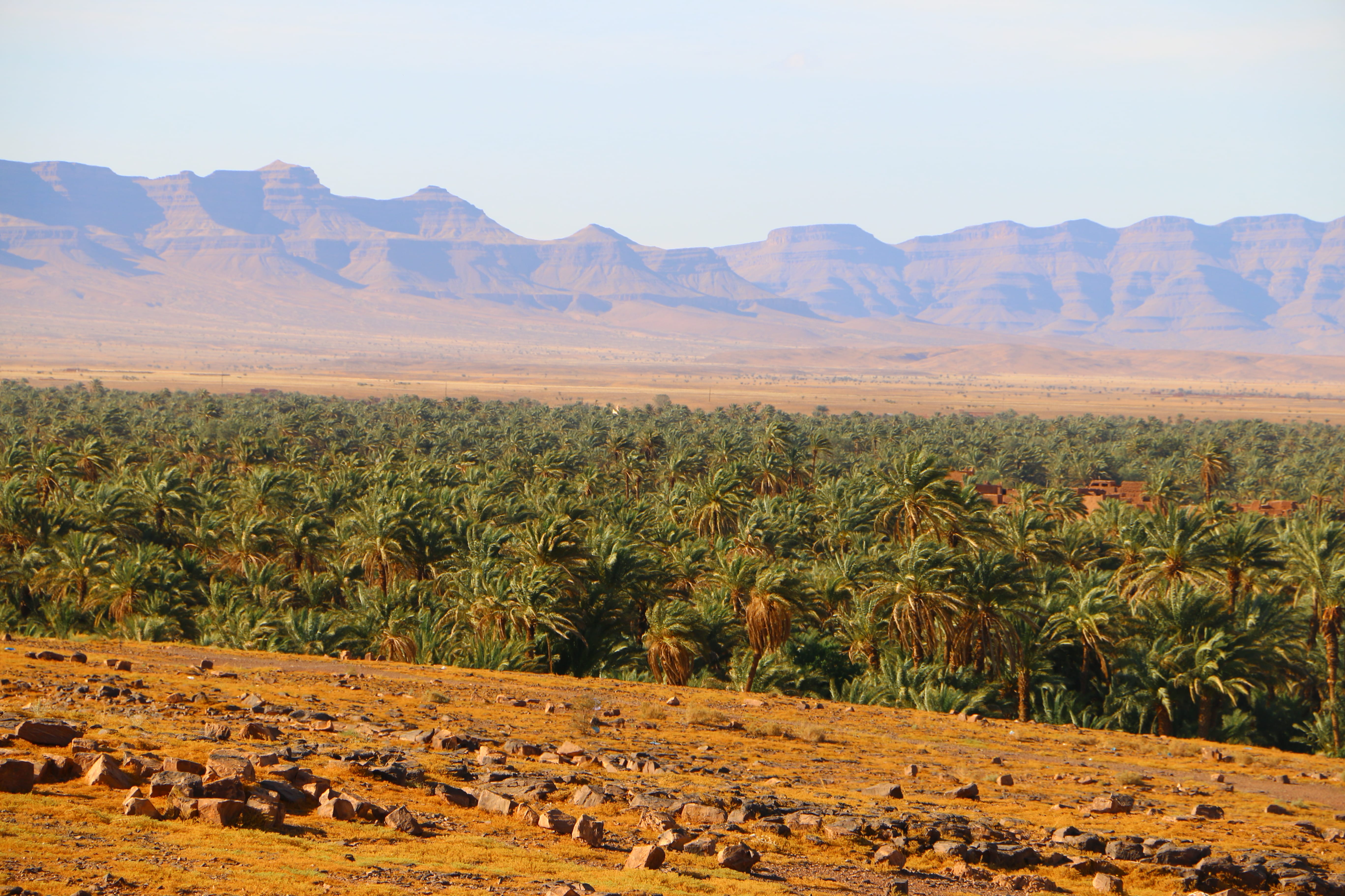 After crossing the Anti-Atlas, you arrive at the green and peaceful Draa Valley which is famous for its huge date groves and henna fields.