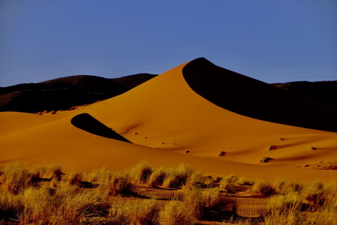 After enjoying the sunrise at the top of the sand dunes, you’ll have your breakfast in the desert camp before the journey with the 4x4 car starts. Discover the the old Paris-Dakar road to Foum Zguid and cross the Iriki lake, which is a temporary wet land during rain periods. In this national park you’ll have the chance to spot some wild animals like lizards, snakes, gazelles and even hyenas with a little luck. Lunch will be served in the berber village Taznakht. After, we continue to Aït-Ben-Haddou, the fortified clay city with its numerous Ksars and Kasbahs, where several famous movies such as Gladiator, Kingdom of Heaven and Prince of Persia have been shot. Return travel to Ouarzazate with arrival in your Hotel/Riad at about 19:00 h.