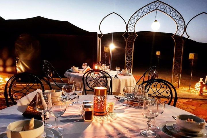 Marvel at the sunrise the next morning and enjoy your rich breakfast before riding back to Zagora by 4x4 or camel